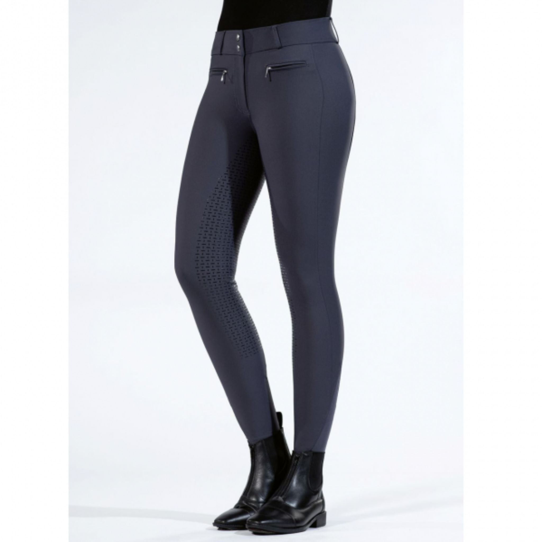 These elegant breeches have classic detailing for a glamorous look both in and out of the saddle. The full silicone seat adds the perfect amount of grip whilst the comfortable fabric allows freedom of movement. The extra high cut waist gives a great shape and the lateral phone pocket on the leg allows you to carry your phone